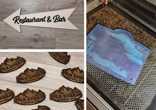 Oferim o gamă largă de posibilități, lucrând cu obiecte de până la 60x40 cm și o grosime maximă de 10 mm. Folosim un laser CO2 de 80W pentru a grava și decupa o varietate de materiale, inclusiv lemn, piele, plastic, plexiglas, acril, MDF, burete, cauciuc și alte materiale organice. Contactați-ne astăzi pentru a discuta cum vă putem ajuta să vă transformați ideile în realitate!